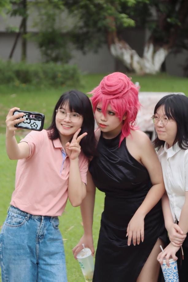 活动分为两个部分,第一部分是以动漫和游戏世界中的经典角色为灵感,通过Cosplay这一新潮的文化形式,让参与者们化身成为那些备受欢迎的动漫或游戏角色,与同学们互动交流。在沉浸式的巡游过程中,他们不仅展示了这些角色的独特服装和形态,更通过生动的演绎,将经典的动漫游戏情境带入现实,让二次元世界中的角色在三次元中焕发出生动的魅力。观众们纷纷拿出手机拍照留念,争相与Coser合影,记录下了这一难忘的瞬间。