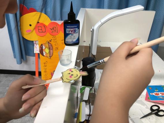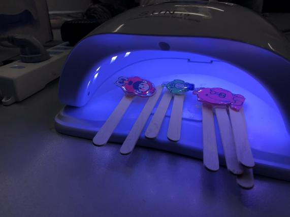 最后,再涂上UV胶封层材料固定色彩,放进烤灯中烘烤60秒,一个个小巧精致的挂件就完成啦。