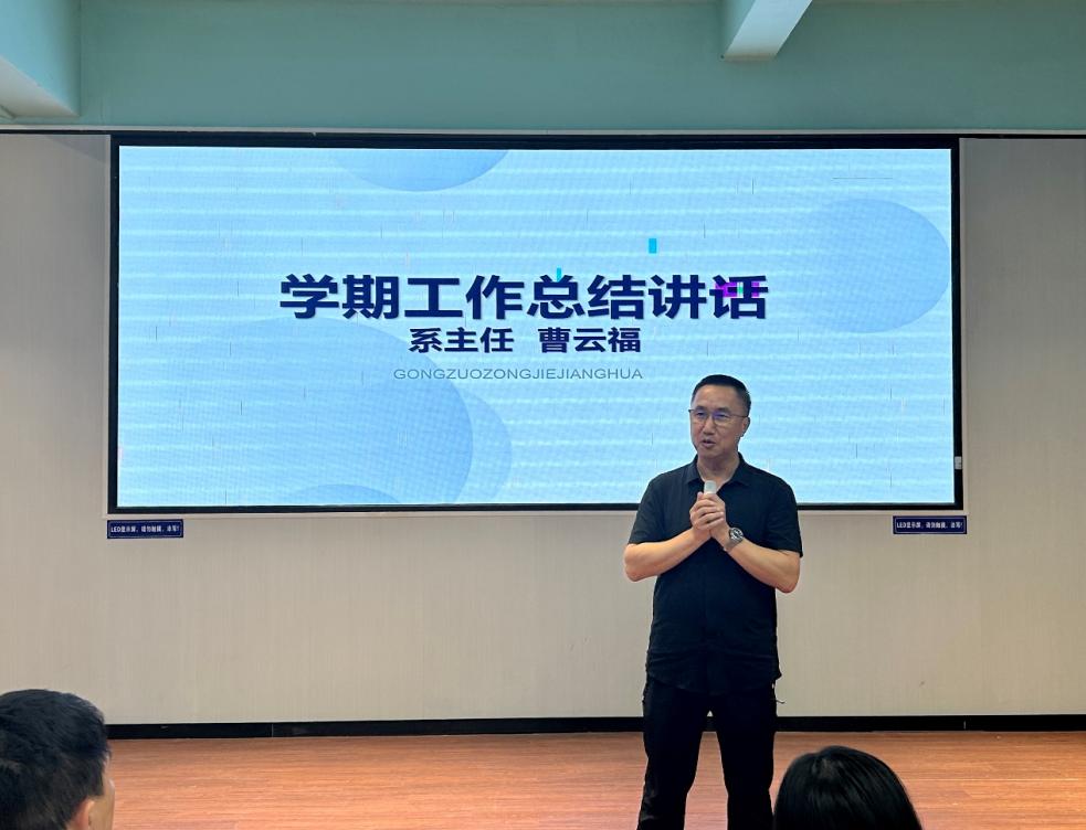 郑仕焯副主任全面总结了本学期的工作亮点与成效,肯定了全系教师的辛勤付出及各教研室一学期以来的丰硕成果。全面总结了过去一年中在科研实训、技能大赛、校企合作、产教融合,活动开展等方面的工作亮点、创新点,以及通过攻坚克难解决的长期存在的难点问题。对各教研室的工作给予积极肯定,鼓励大家不忘初心、务实笃行,齐心协力推动系部的发展。
