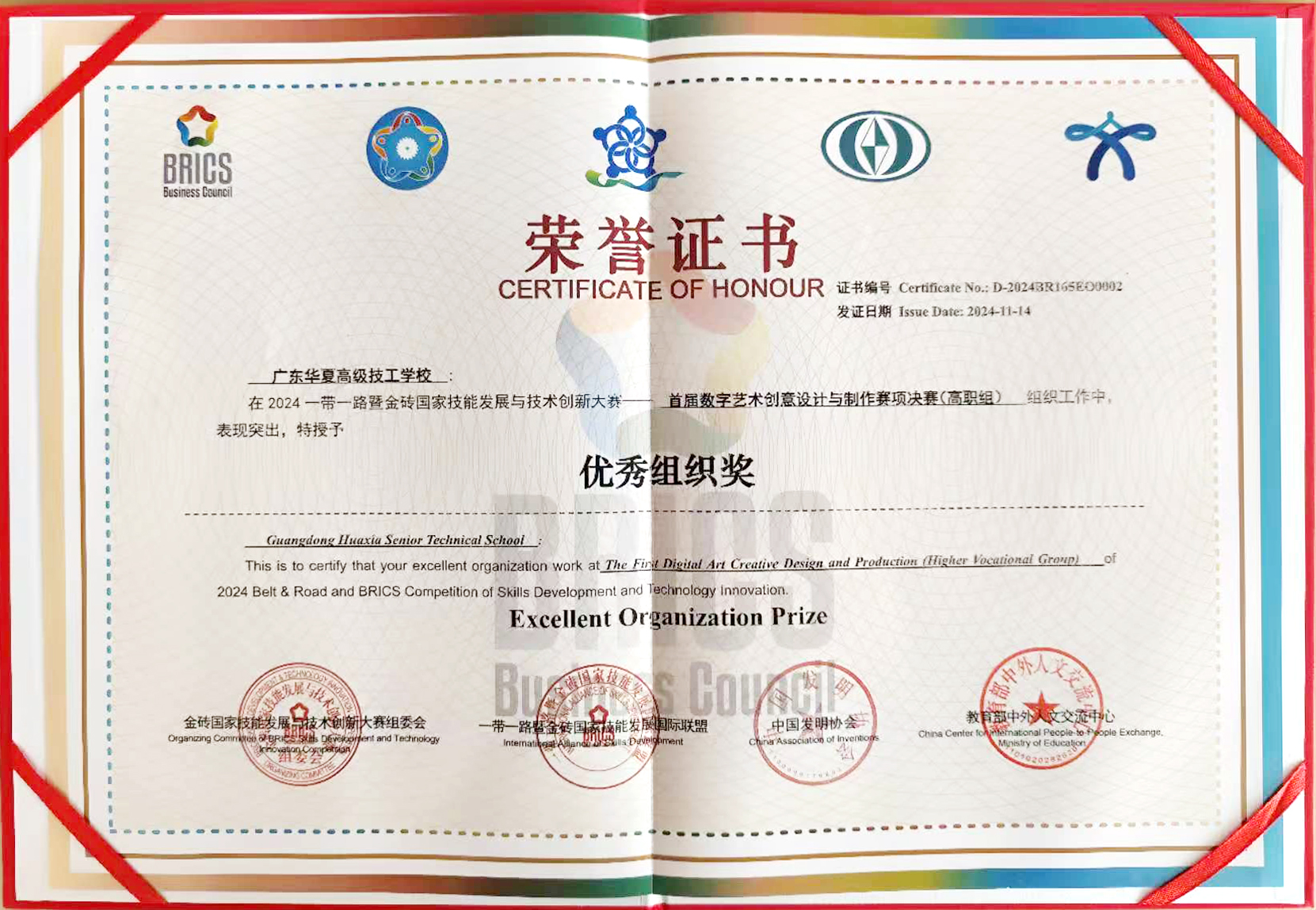 我校广东华夏高级技工学校被授予“优秀组织单位”