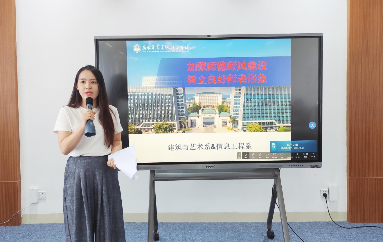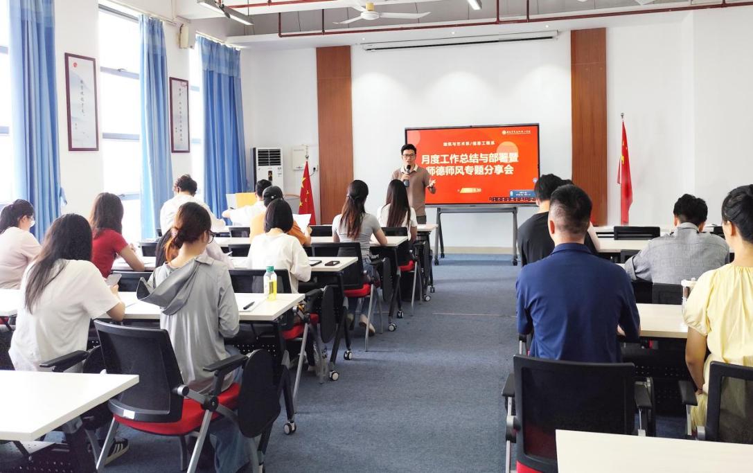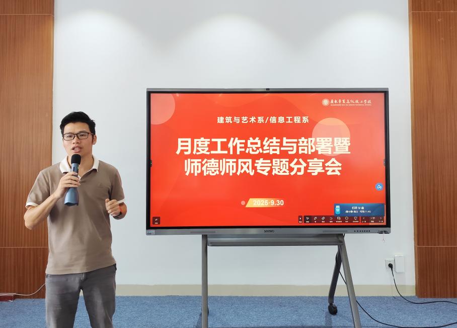 为进一步加强教师队伍建设,全面提升教师思想政治素质和职业道德水平,9月30日下午,建筑与艺术系、信息工程系在教师发展中心召开月度工作总结暨师德师风建设专题学习会。由系部副主任郑仕焯主持,全系教职工教师参会。