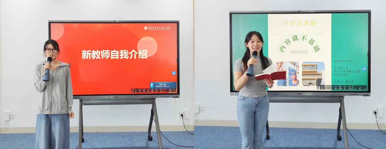 新教师也在活动中自我介绍与分享环节,潘俐以简历中优异的竞赛成绩为基石,更以高尚师德师风为魂。将竞赛中拼搏钻研的精神传递给学生,既做知识的引路人,更当品德的塑造者,彰显师者育人初心。黄伟杰则结合企业实践经历,结合学校“职工书屋”开幕式传达精神,表达了“把工匠精神转化为师风力量”的决心,共建“书香师德”新阵地活动进行了分享。