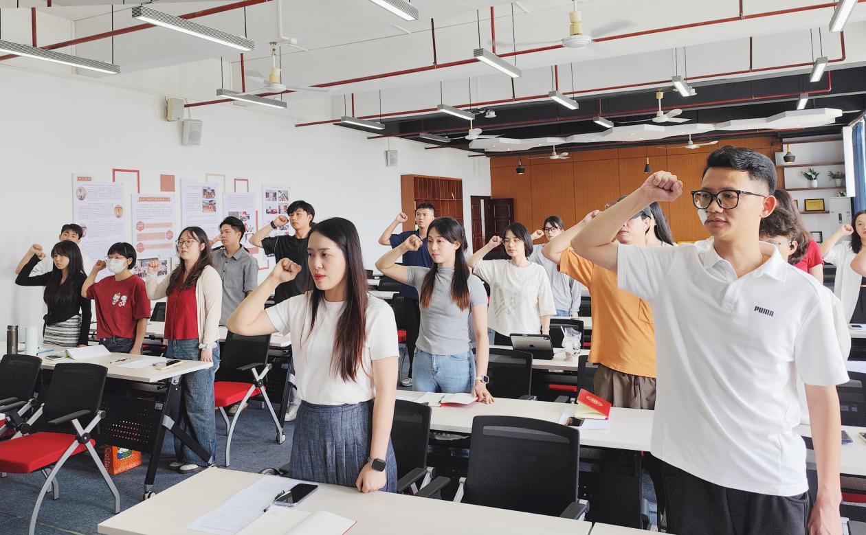 庄严承诺:一份承诺,一生践行 郑主任领誓下,全系教师高举右拳,庄严宣誓:“忠诚党的教育事业,坚持立德树人,追求德技双馨……”