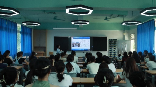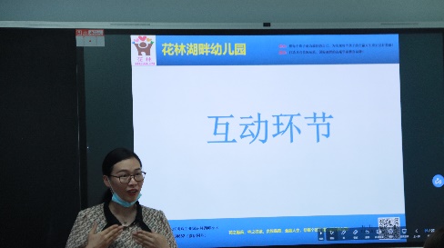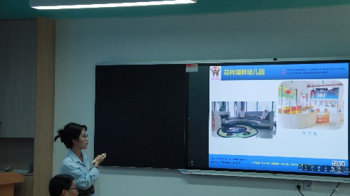 宣讲会上,幼儿教育教研室黎小静主任对林萍园长和梁老师进行介绍,梁老师用PPT对花林湖畔幼儿园进行介绍。从园所的位置、占地面积、幼儿园环境、幼儿园课程、幼儿园区角活动、幼儿园的人才需求等方面展开宣讲,为学生了解幼儿园工作打开了一个窗口。