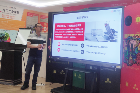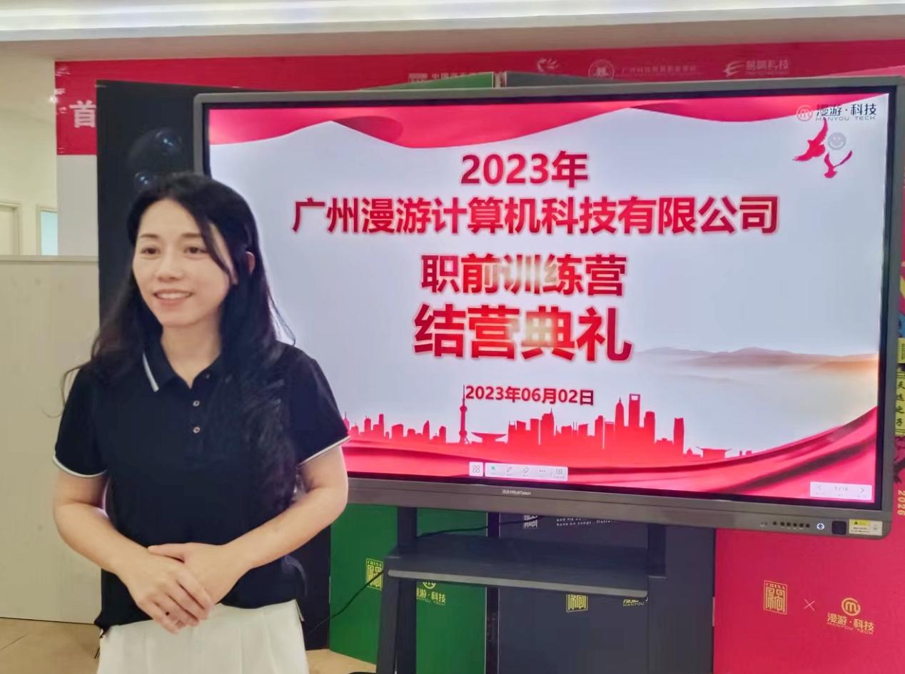 首先,杨经理对广州漫游计算机科技有限公司的基本情况和训练营项目背景进行简要介绍,通过视频回顾了同学们一个月以来的学习与生活的点点滴滴,将训练营中同学们的学习生活浓缩在趣味视频中,展现了企业的多元文化以及同学们个性飞扬的学习生活。
