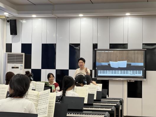 在不断地练习后,学生们纷纷踊跃上台展示自己的弹奏成果,向各位教师展现了她们对音乐的深厚理解和娴熟的弹奏技巧,有的同学还加入了个人对这首作品的独特理解,使得这首作品在公开课中焕发出了新的生命力。