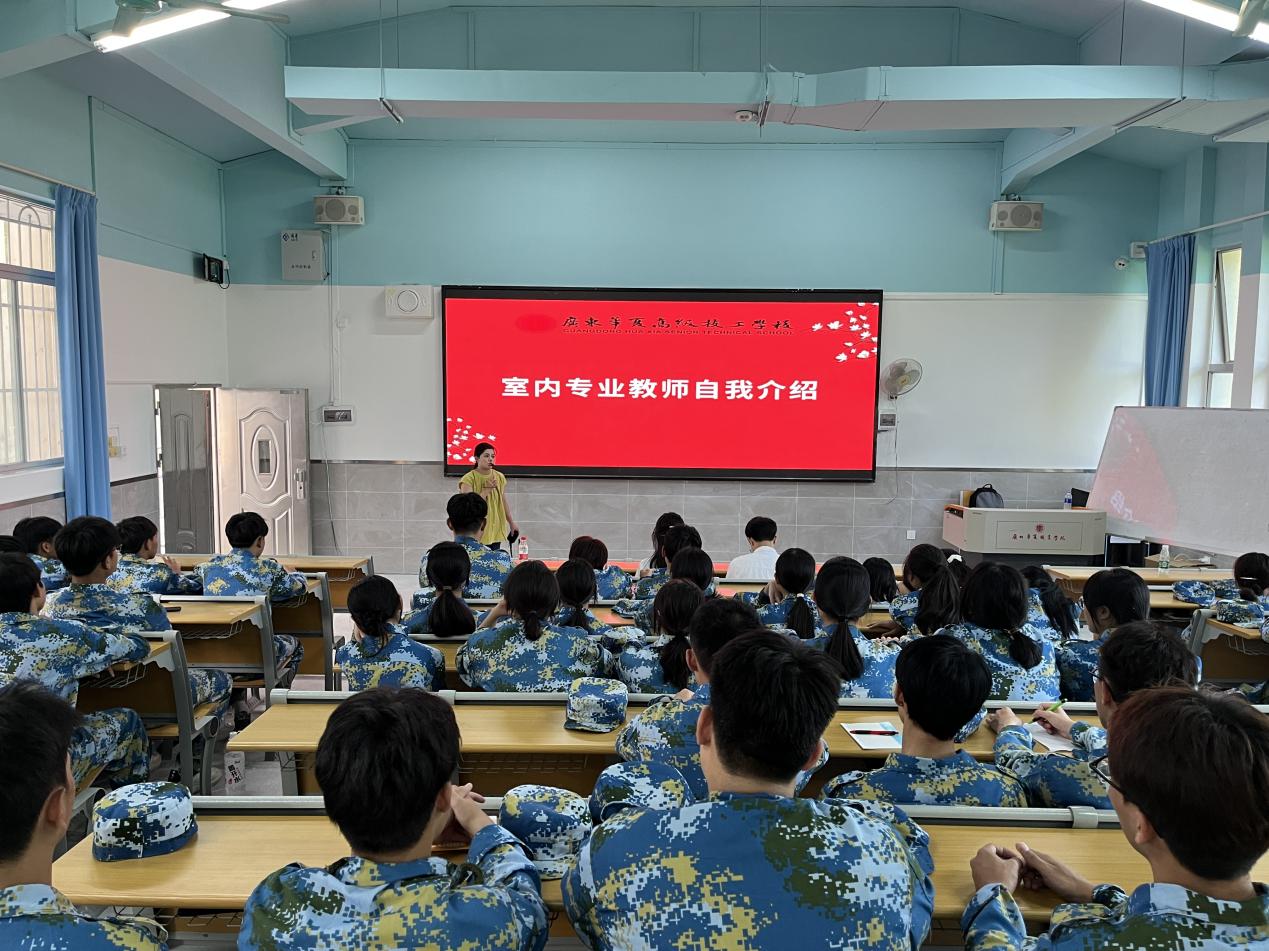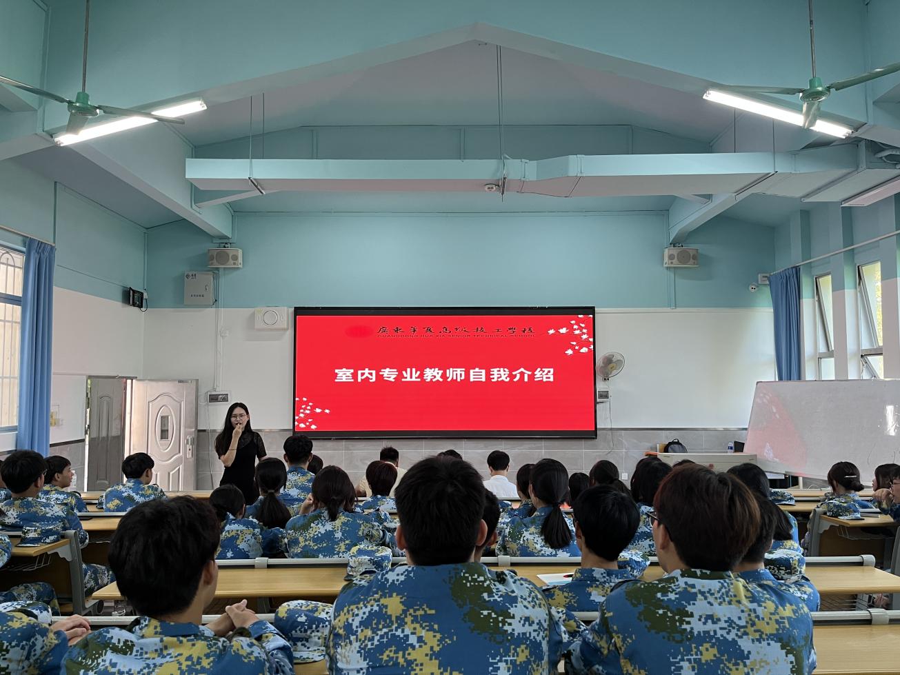 2023年9月4日上午9点40分,冯晓明老师给新生们介绍“室内设计”专业,从专业解释、课程设置、发展前景、岗位结构等方面详细的为同学们介绍了即将学习的专业,同学们聚精会神的听着专业介绍,并积极回答问题和提出疑问,现场气氛活跃,充分展现出同学们对未来专业学习的兴趣。冯晓明老师也在最后送给全体同学成为一名设计师的品行“先做人,后做事,终身学习”的良言。