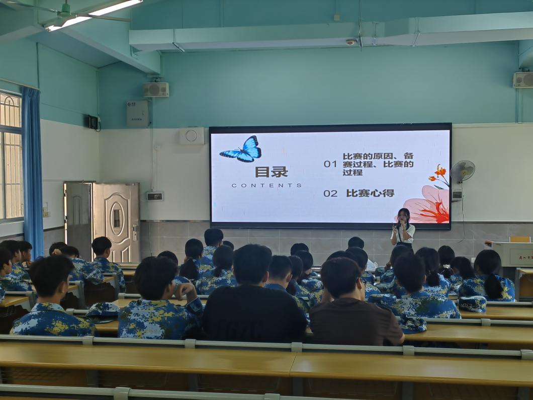 2023年9月4日上午10点50分,室内设计国赛金牌选手谢金燃同学给新生们分享竞赛经验,她从比赛原因、备赛过程、比赛过程这几方面去讲述了在参加整个比赛中的心路历程,例如,参加比赛是为了更好的提升自己、备赛过程中努力的成果以及遇到的问题、比赛中如何沉着冷静的应对困难等,在最后谢金燃同学和新生们分享了比赛后的心得和学习的方法,同时也鼓励大家努力学习专业课程,积极参加比赛提升自身专业能力,未来能成为一名优秀的室内设计师。
