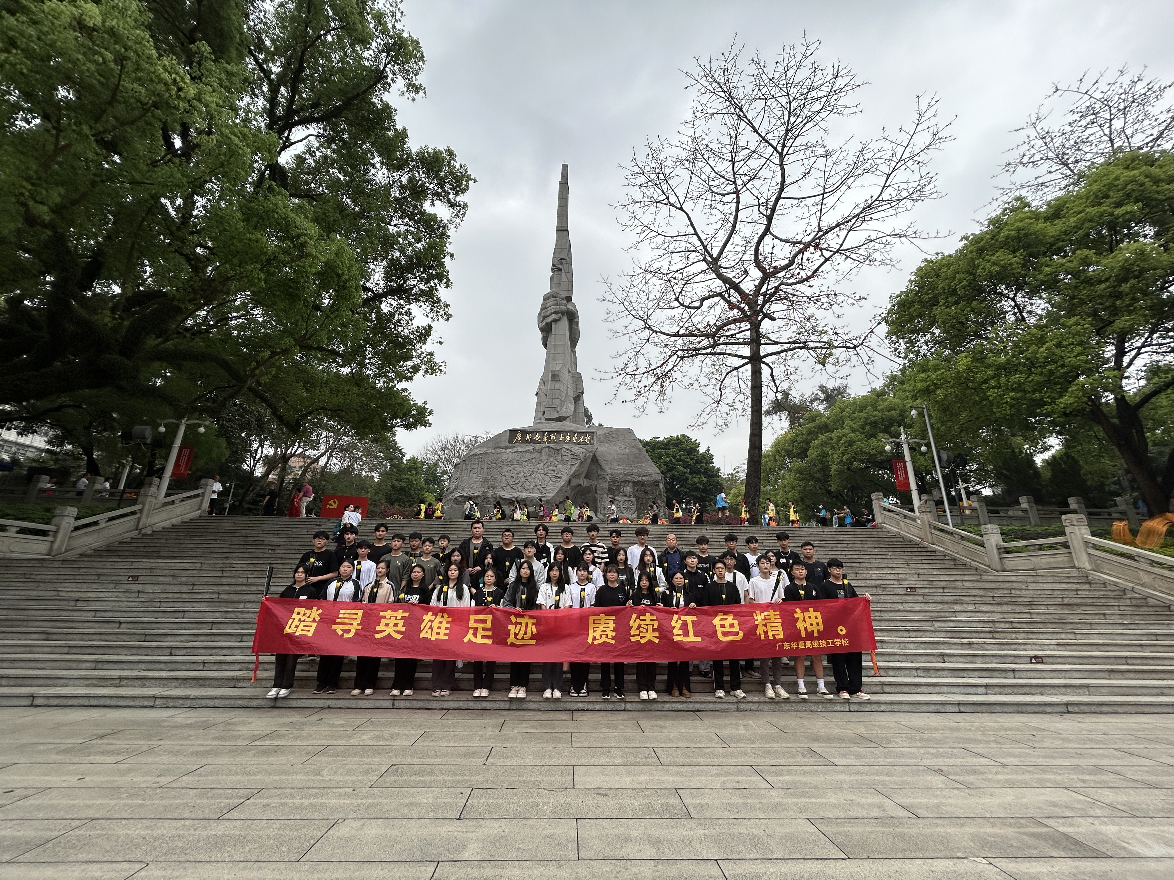 清明寄哀思,鲜花敬英雄。为开展好爱国主义教育,缅怀革命先烈,传承红色文化,3月30日上午,在清明节即将到来之际,我系和校团委联合组织开展“缅怀先烈志,共铸中华魂”祭拜先烈主题活动。系德育副主任梁华君老师带领党员、团员代表、入团积极分子、等50名师生代表前往广州起义烈士陵园开展此次活动。