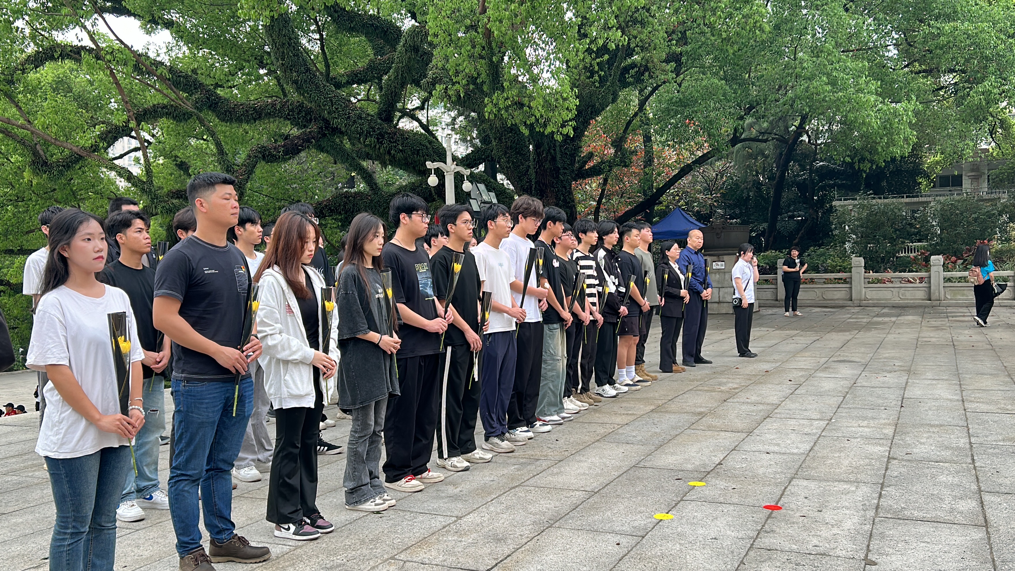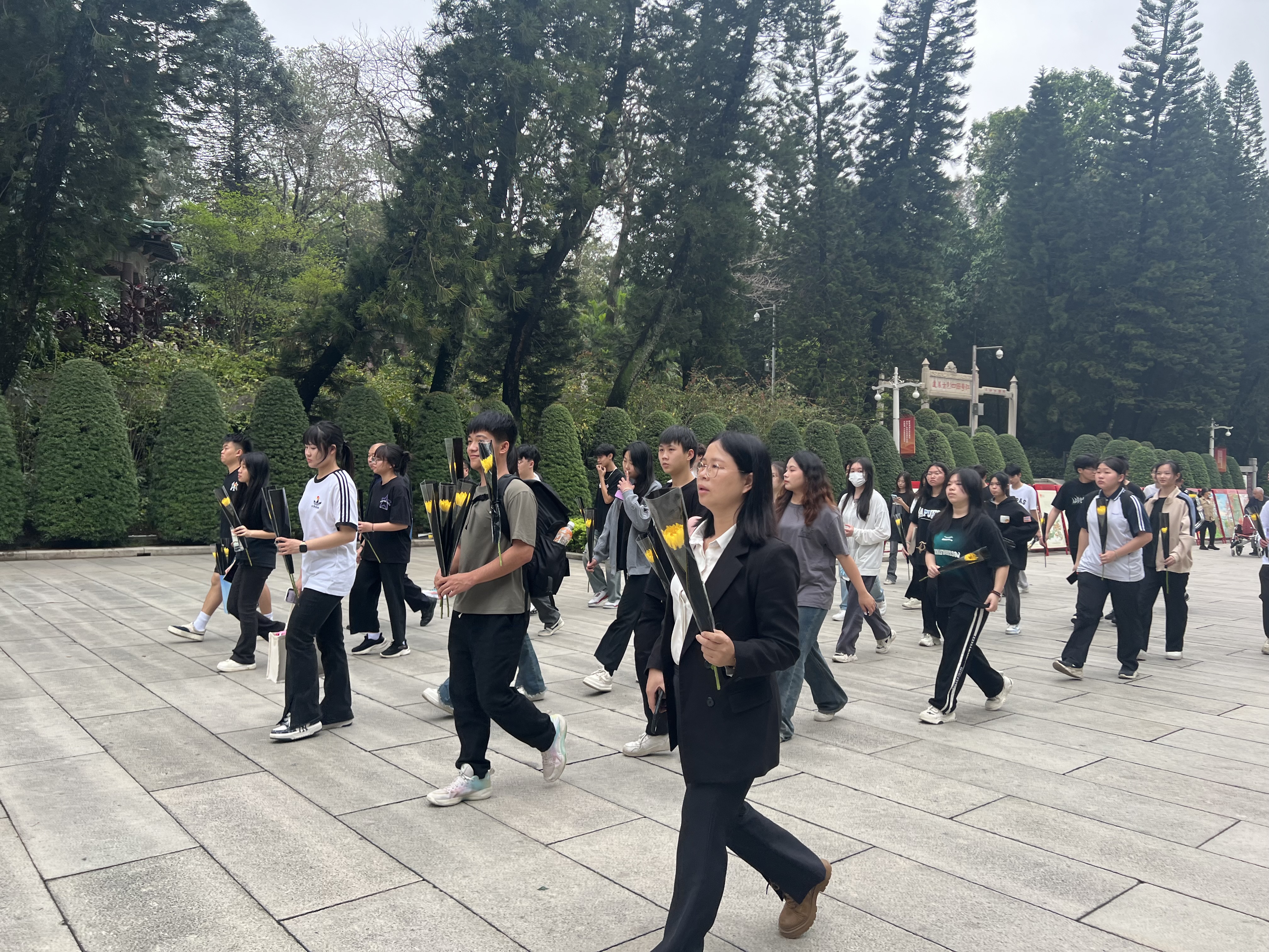所有师生排列整齐进入烈士陵园