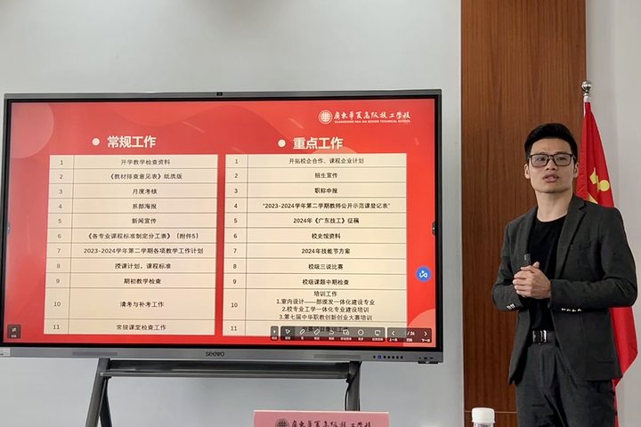 最后,学校顾问冯为远教授本次会议作出了总结,对系部的工作情况表示肯定,高度赞扬了系部负责人、教职员工队伍的敬业精神和专业素养。同时,冯顾问强调,对接下来系部的长期工作,需要紧紧围绕学校发展计划开展,一是逐一落实学校申报技师学院评估、广东省技工学校示范校建设等重点工作,推动学校高质量发展;二是全力推动学校2024年“11433”重点工作,即“一个引领、一个转变、四项重点、三大建设、三个加强”,以新气象新作为推动学校高质量发展取得新成效;三是全体教职工要以无限的激情、开阔的胸襟投入到高技能人才培养中,加强技能人才培养。