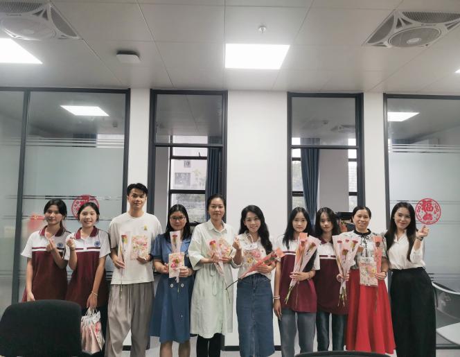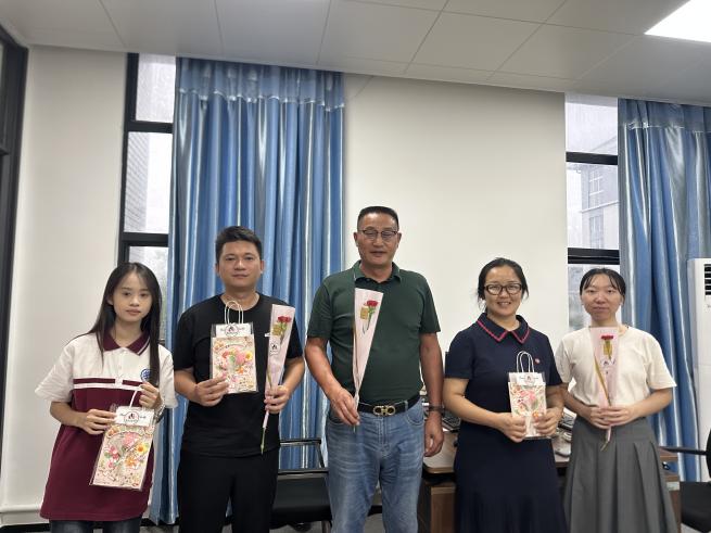 9月10日活动当天,幼儿教育专业和新媒体专业的学生手持亲手制作的精美贺卡,搭配精心挑选的康乃馨、玫瑰花,通过现场送祝福的形式,向各位领导与教师表达敬意和感谢。收到礼物的教师们纷纷驻足,仔细翻看贺卡上的手写字迹与创意设计,现场不时响起阵阵笑声与掌声,“感恩师恩・致敬匠心”的氛围格外浓厚。